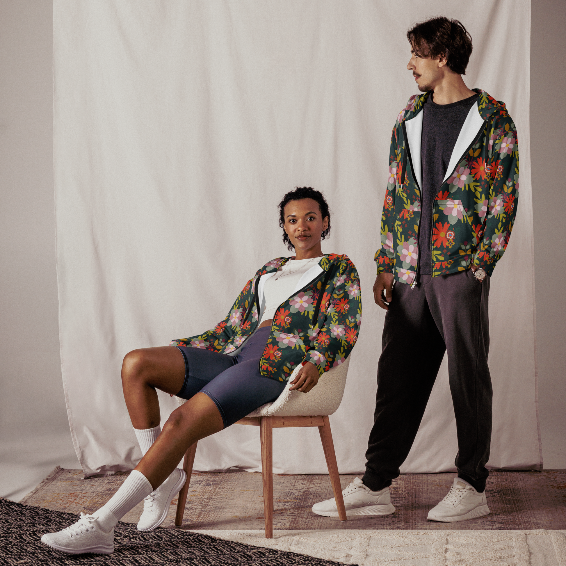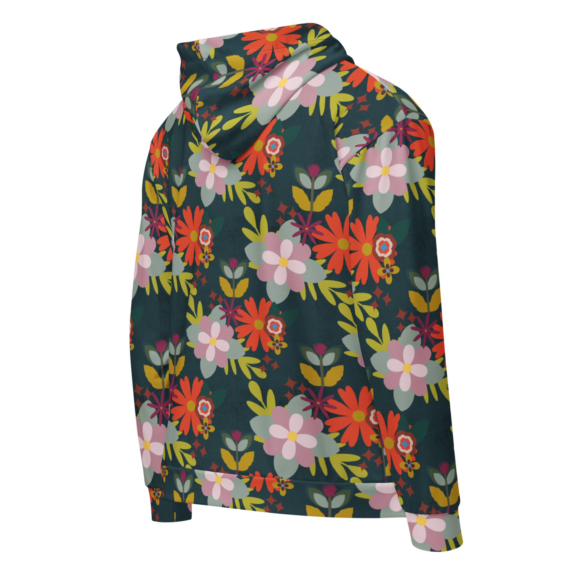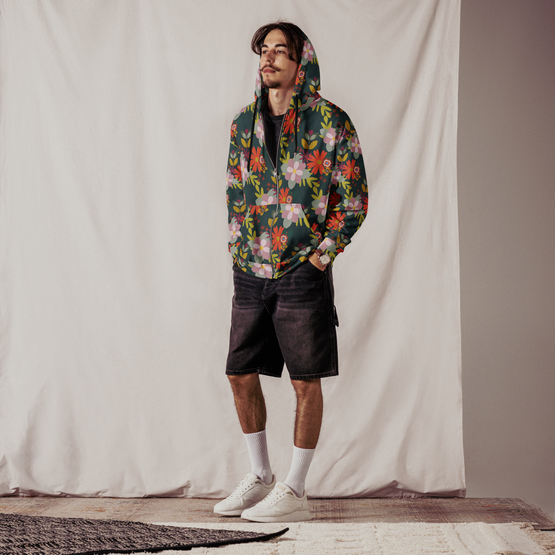 Update your streetwear style with this unisex all-over printed zip-up hoodie. Enjoy a soft, cotton-feel fabric while benefiting from high durability and premium print quality. The brushed fleece lining adds an extra layer of comfort. The unisex style features dropped shoulders, offering a relaxed and chic look. Personalize both sides of the hood and complete the design with a customizable inner label.